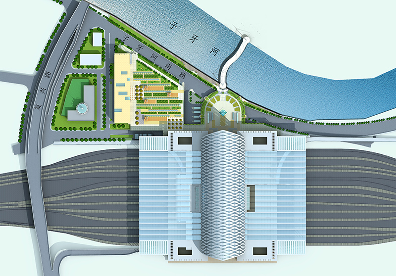 天津西站交通樞紐北廣場(chǎng)包括出租車蓄車場(chǎng)、社會(huì)停車場(chǎng)、北廣場(chǎng)進(jìn)站高架平臺(tái)及跨子牙河南路高架平臺(tái)、站房西側(cè)出租車地下接客區(qū)出口通道、基本站臺(tái)以北行包房通道及行包車停車場(chǎng)及非機(jī)動(dòng)車停車庫(kù)。